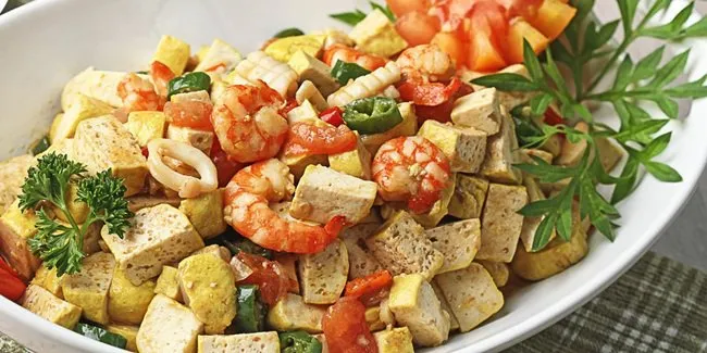 - 1 kotak tahu kuning, kukus dan potong dadu